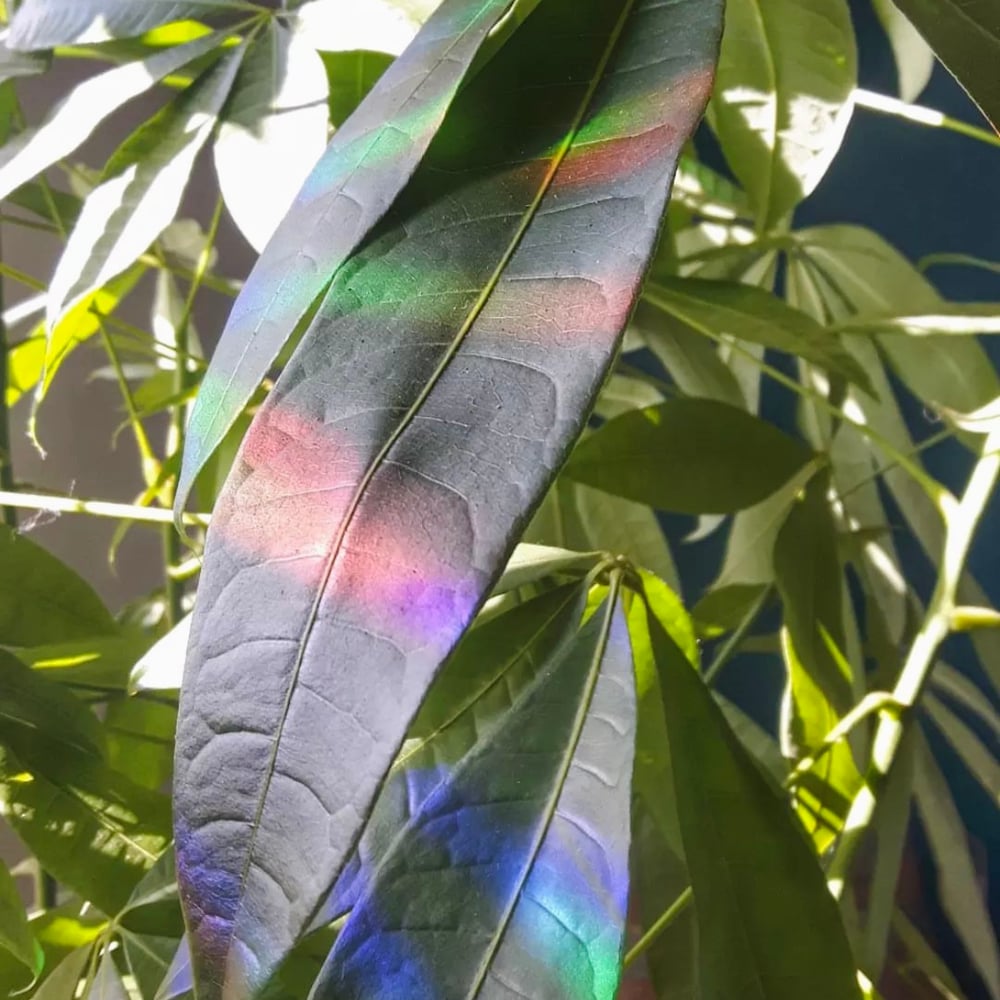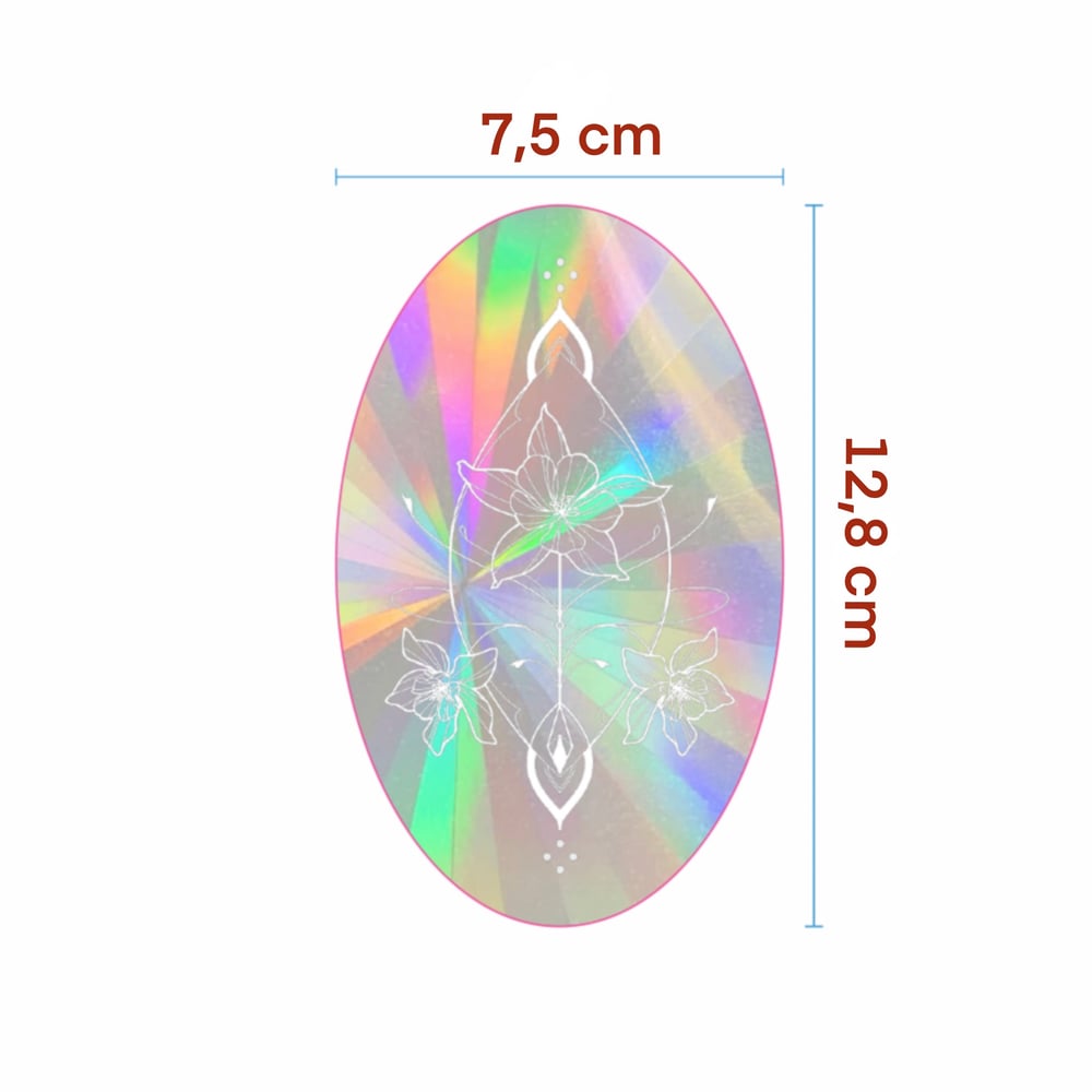 Choisis une vitre qui profite de la lumière directe du soleil, à un endroit où les rayons tape le plus fort, et colle ce sticker ! Tu verras apparaître des rayons arc en ciel à l'intérieur de chez toi.